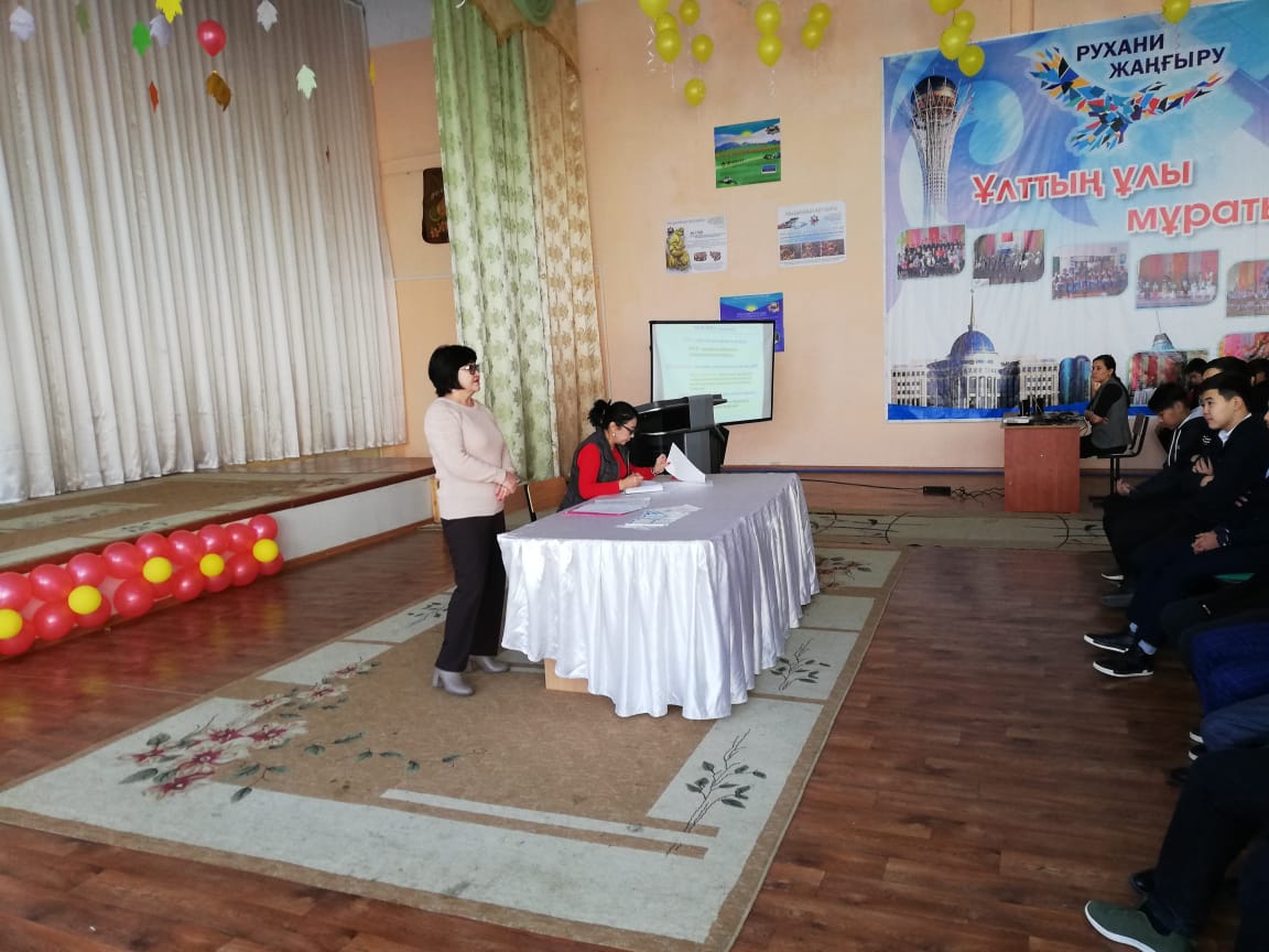 Кездесу барысында облыстық ЖИТС орталығының дәрігер -эпидемиологы Г.Айтмаганбетова республика, облыс көлемінде АИТВ/ЖИТС-тің қазіргі таңдағы індеттік ахуалы, жұғу жолдары, алдын-алу және денсаулыққа байланысты жауапкершілікті арттыру жөнінде ақпараттар беріп, жасөспірімдерді зиянды әдеттерден қашық болуға насихаттады. Сонымен қатар, республика, облыс көлемінде «Қауымдастықтың маңызы бар» ұранымен 2019 жылдың 5-ші қарашасы мен 5-ші желтоқсаны арасында ұйымдастырылып жатқан Дүниежүзілік ЖИТС-ке қарсы күрес күніне арналған кампаниясына тоқталып, қазіргі таңда АИТВ-инфекциясын алдын алуда, оның ішінде осы ауруды жұқтыруға бейім топтармен , жастар мен жасөспірімдермен жұмыс жасауда қауымдастықтардың, үкіметтік емес ұйымдардың маңыздылығы мен ролі туралы ақпарат берді. Қатысушылар тарапынан маманға көкейлерінде жүрген сауалдарын қойып, жауап алды. Оларға ақпараттық білім беру материалдары - слайд, бейнефильмдер көрсетілді, жастарға арналған буклеттер мен үнпарақтар таратылды.