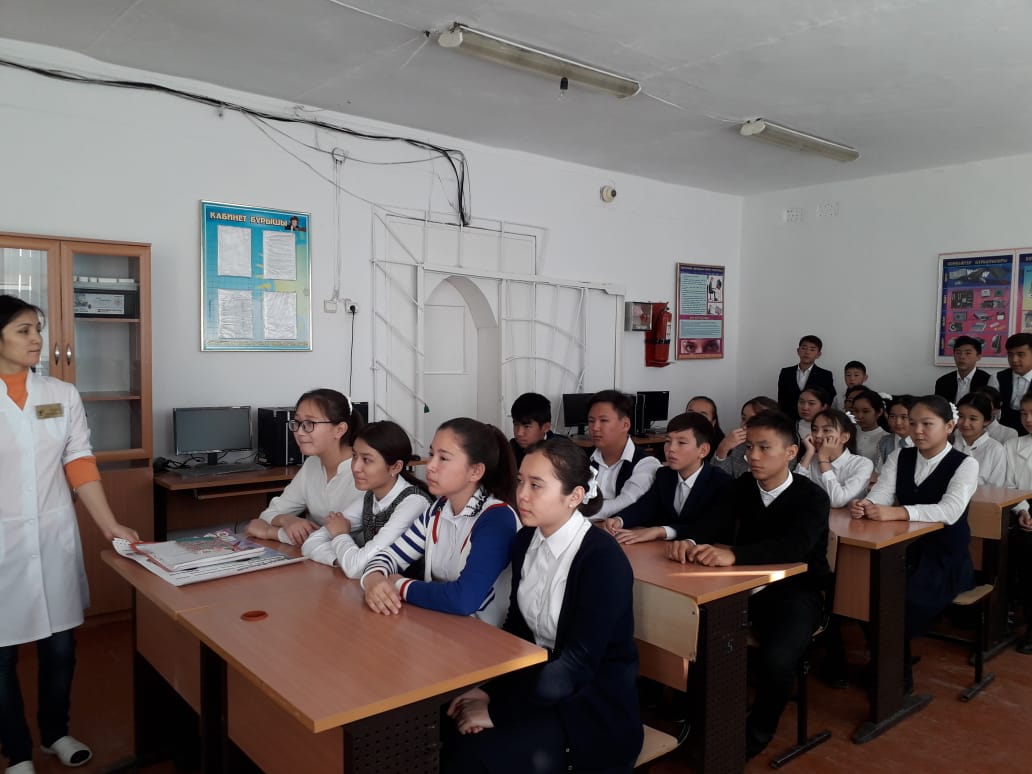 кездесуге Жастар денсаулық орталығы маманы, эндокринолог дәрігер, және ЖИТС орталығы эпидемиолог көмекшісі Т.Айбасов қатысты. Оқушылар АИТВ/ЖИТС бойынша эпидемиологиялық жағдайы туралы ақпаратты қызығушылықпен тындады. Ұсынылған бейнефильм бейнероликтер нашақорлық пен АИТВ мәселесіне ешкімді бей жай қалдырған жоқ. Бұған дәлел кездесу аяғында қойылған көптеген сұрақтар болды.