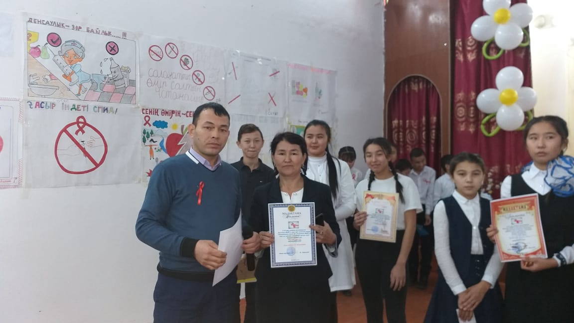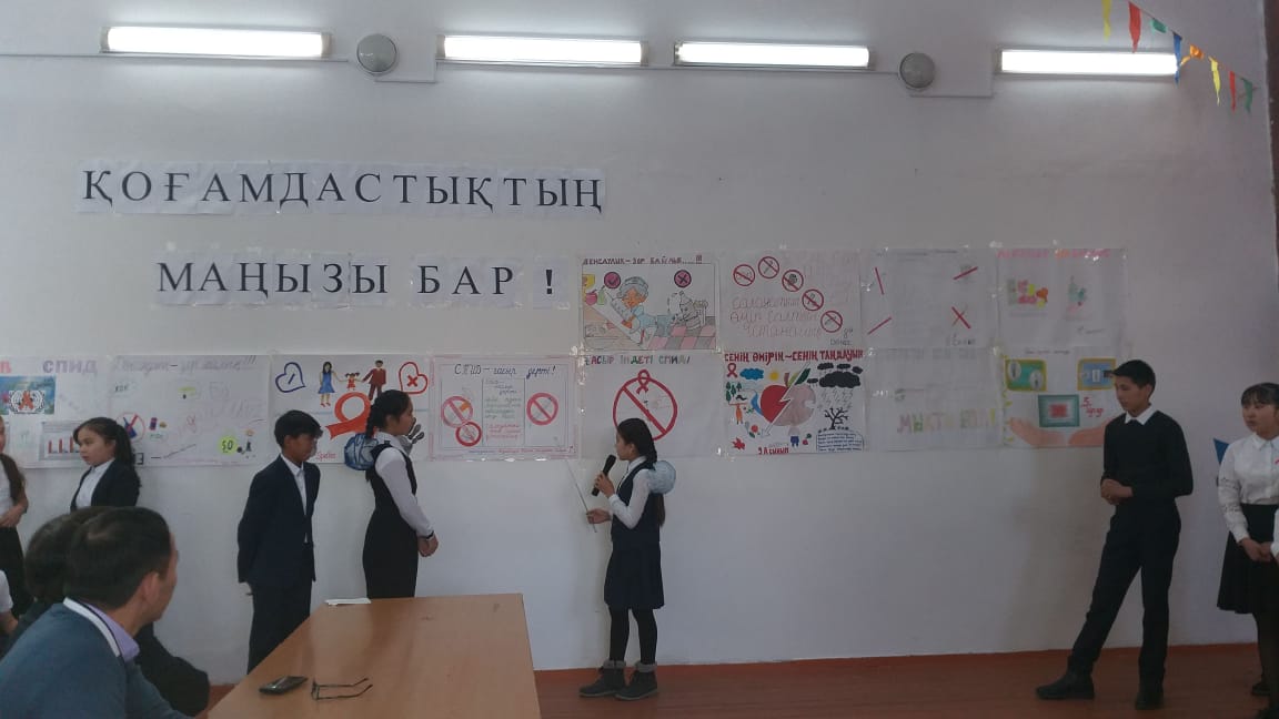 Іс-шараға мектеп директоры Сейдахметов Жандос өз пікірін білдіріп мұғалімдер мен оқушыларды белсенділікке шақырып, сәттілік тіледі. Мектеп аяжаны Әлия Аманбекқызы іс-шараның маңыздылығына тоқталып, білім саласы бойынша АИТВ/ЖИТС барысында атқарылып жатқан жұмыстарды айтып өтті.