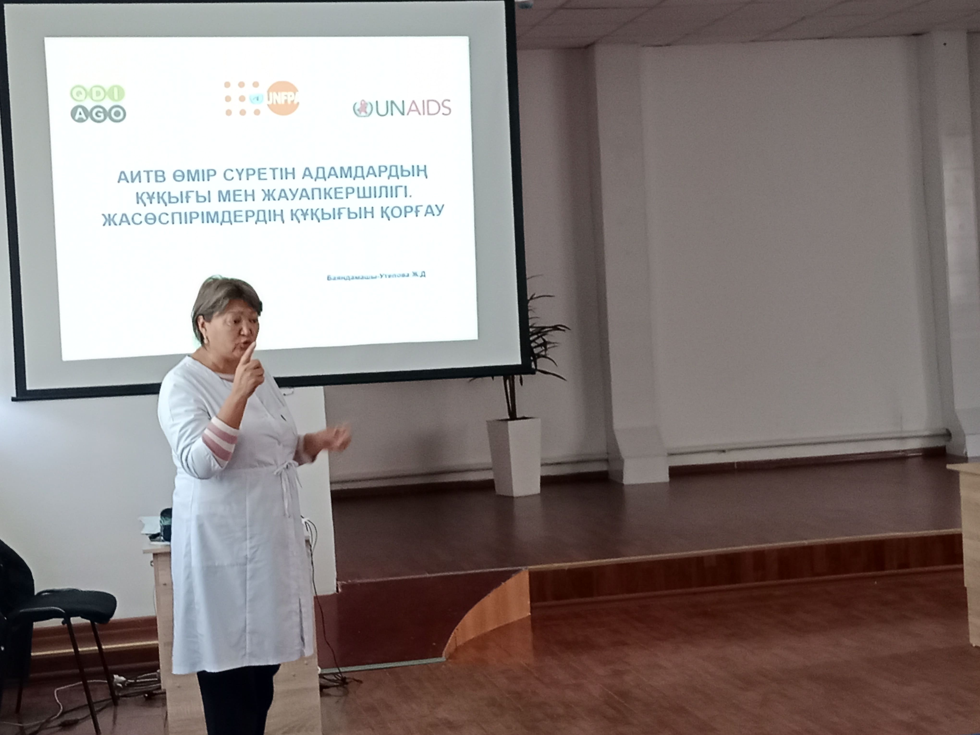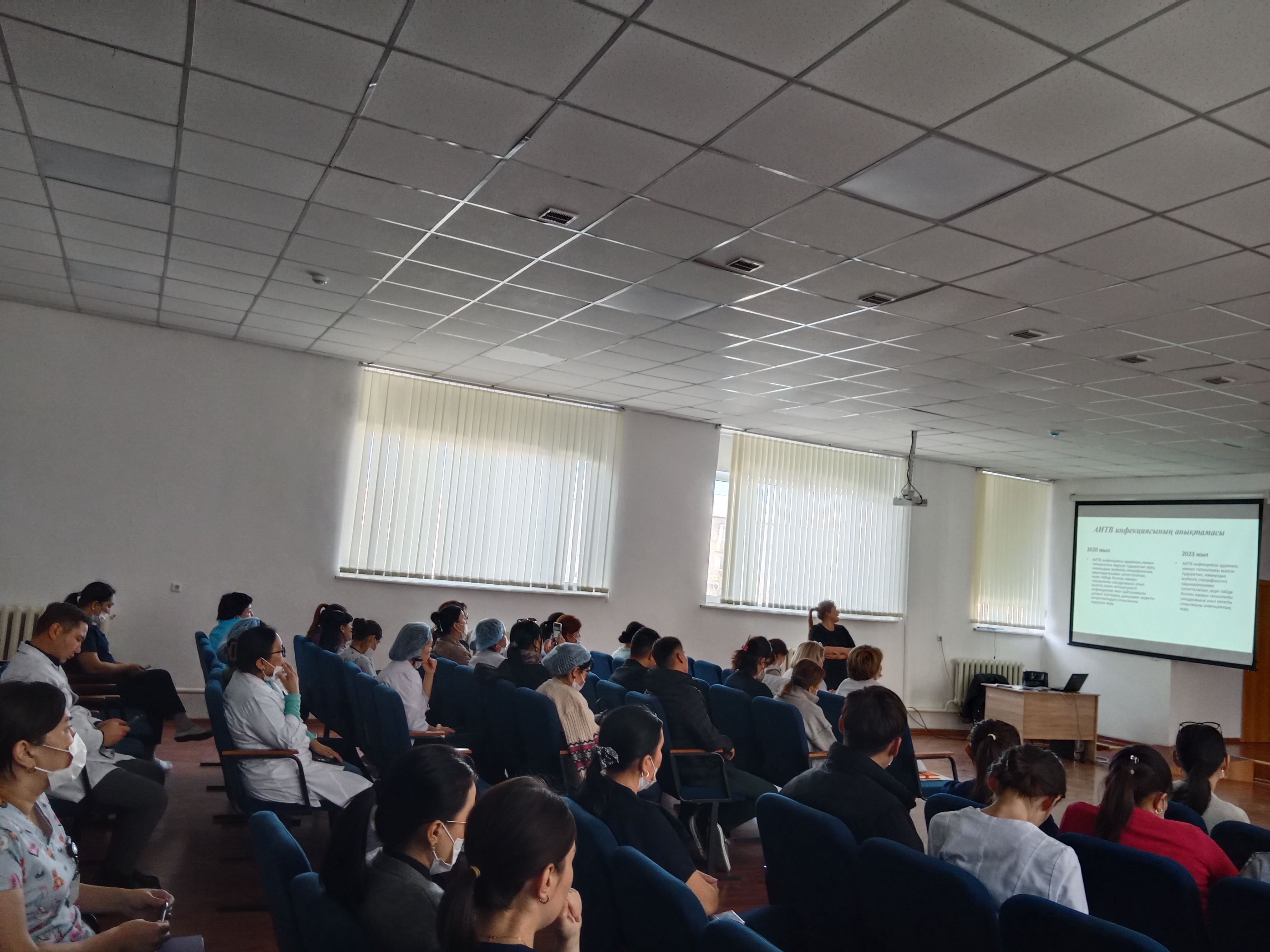 Данные проведены в целях реализации мер «Дорожной карты по предотвращению ВИЧ-инфекции в Республике Казахстан на 2023-2026гг» заведующим организационно-методического отдела областного центра по профилактике ВИЧ-инфекции Ж. Утеповой и врачом инфекционистом А.Балмахановой на тему «Ведение пациентов, живущих с ВИЧ: диагностика и лечение ВИЧ/гепатита, сердечно-сосудистых, онкологических, неврологических, психиатрических, легочных, акушерско-гинекологических, нефрологических и других ВИЧ-ассоциированных заболеваний», «Профилактики передачи ВИЧ, сифилиса, вирусных гепатитов от матери ребенку» и «Проблемы стигматизации и дискриминации в отношении людей, живущих с ВИЧ, и представителей ключевых групп населения».