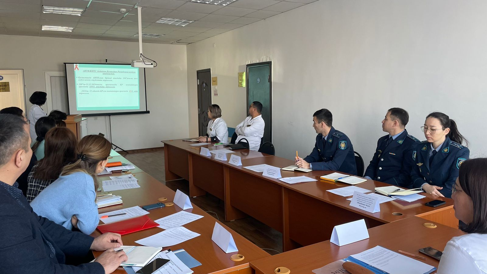 На совещании обсуждались актуальные вопросы по профилактике ВИЧ-инфекции среди спецконтингента в учреждениях ДУИС. Врачи центра по профилактике ВИЧ инфекции выступили с докладами о результатах профилактической работы, по эпидемиологической ситуации сложившейся в Республике, в области, в подведомственных учреждениях УИС. О результатах профилактических мероприятий среди спецконтингента, о работе по тестированию заключенных на ВИЧ-инфекцию.